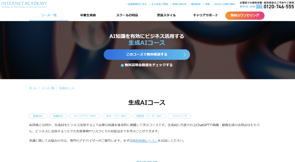 | 公式サイトURL | https://www.internetacademy.jp/course/business/generative_ai.html |