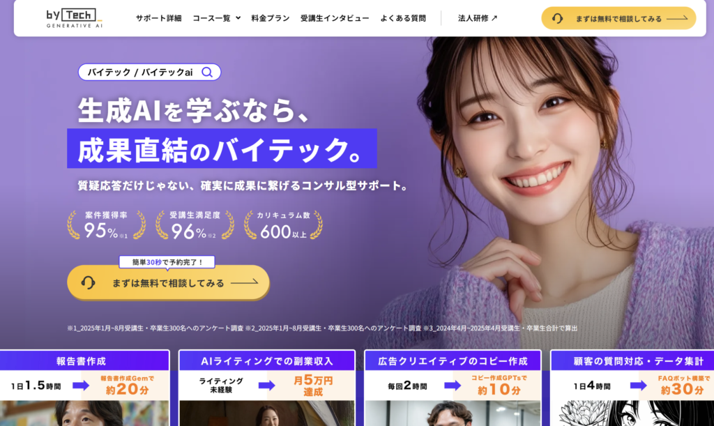 | スクール名 | byTech(バイテック)生成AI「生成AI基礎マスターコース」 |