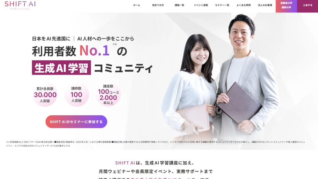 SHIFT AI「AI大学」ほか(ビジネス職向けの生成AI活用が中心)