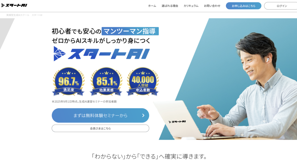 | 無料講座の有無 | 無料説明会・体験講座あり。生成AI入門セミナー開催 |