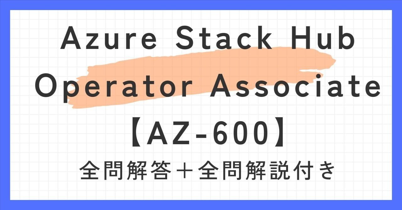 Azure Stack Hub Operator Associate【AZ-600】100題過去問 問題集全問解答+全問解説付き |Azure過去問解... Azure Stack Hub Operator Associate【AZ-600】の過去問100題を全問解答+全問解説付き Azure Stack Hub Operator Associate【AZ-600】の最新の問題になります。 筆者が実...