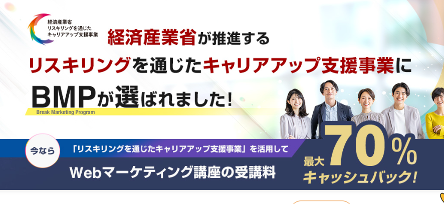 BMPは経済産業省が推進する「リスキリングを通じたキャリアアップ支援事業」の対象講座に認定されています。