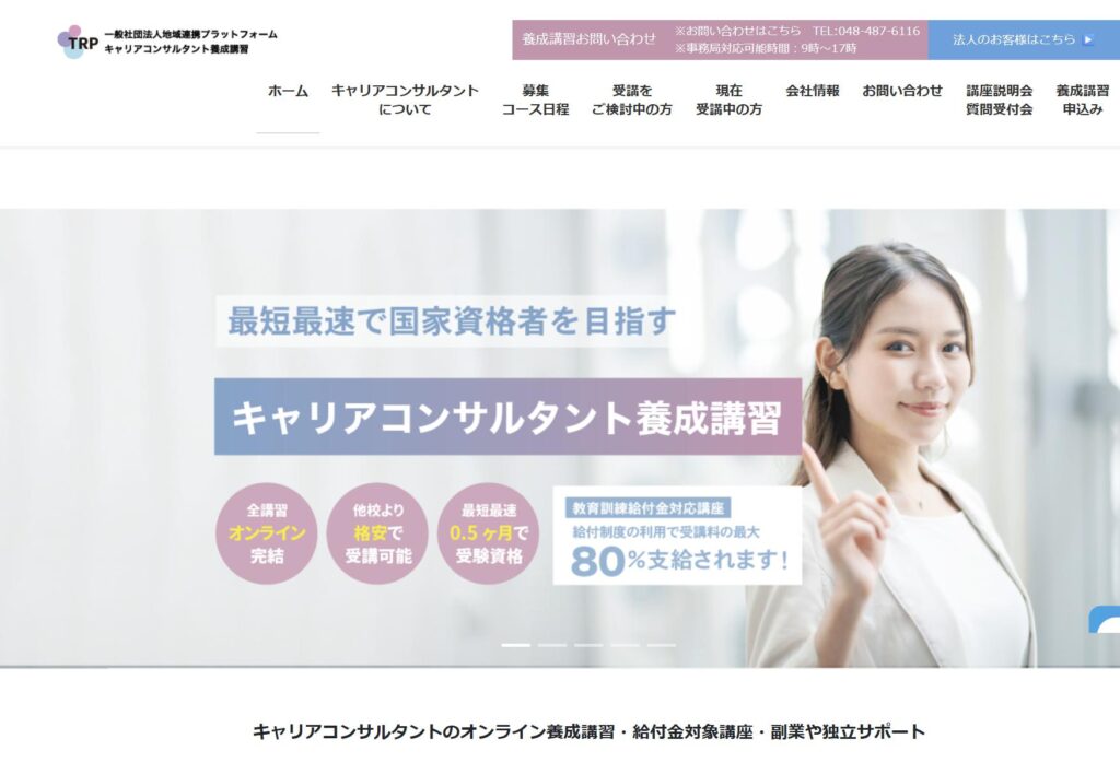 キャリアコンサルタント講座のおすすめ第1位は、一般社団法人地域連携プラットフォームです。