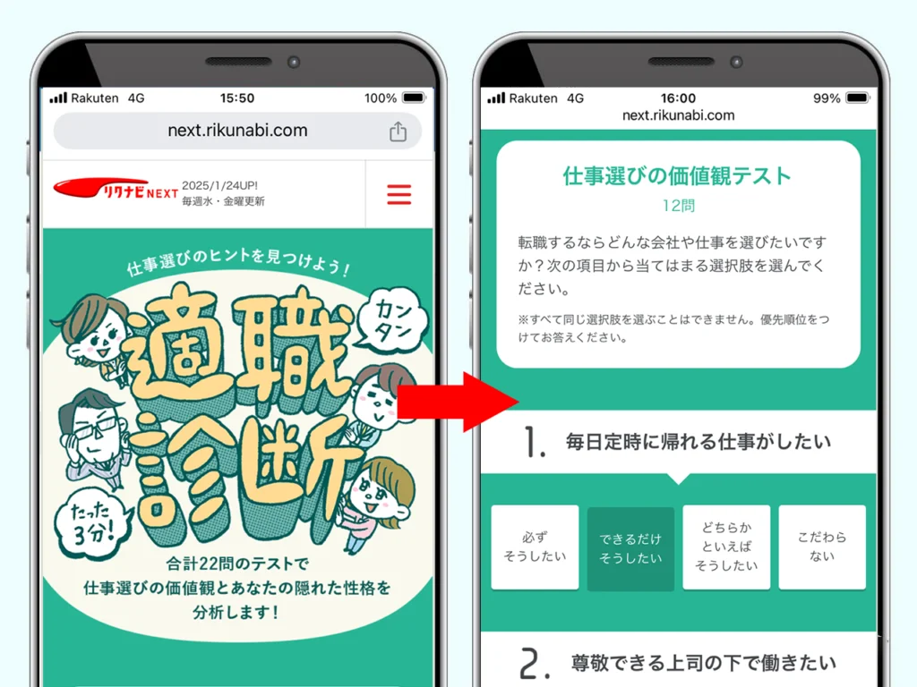 リクナビNEXTには目的に応じて2種類の無料診断があります。