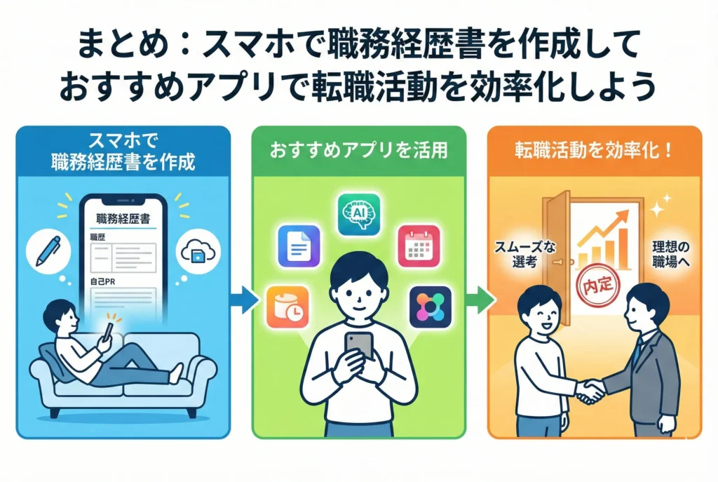 まとめ:スマホで職務経歴書を作成しておすすめアプリで転職活動を効率化しよう