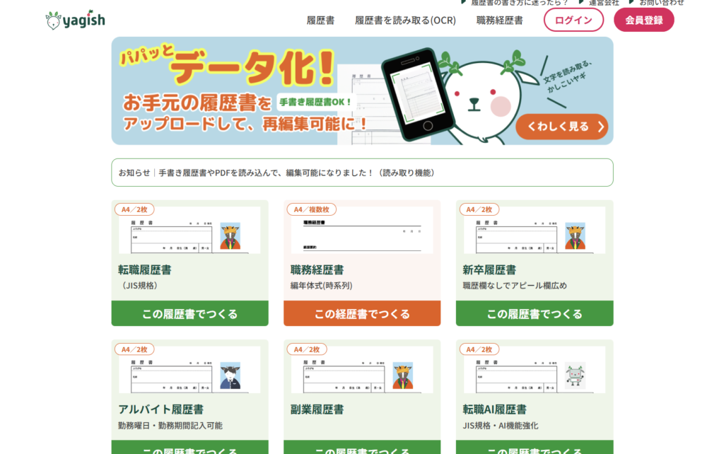 Yagish(ヤギッシュ)|豊富なテンプレートとAI自己PR作成