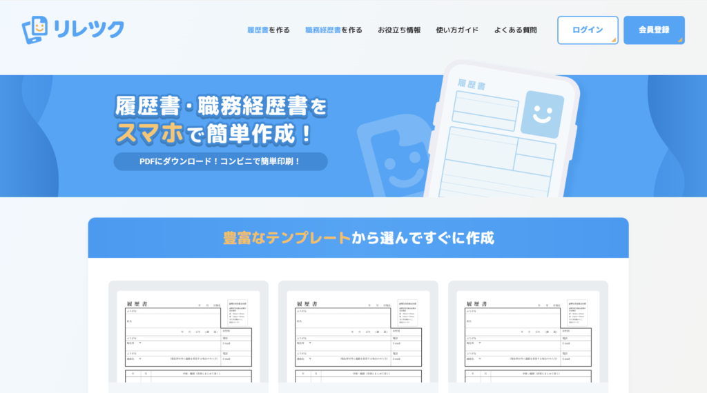 | 作成できる書類 | 履歴書・職務経歴書の2種類 |