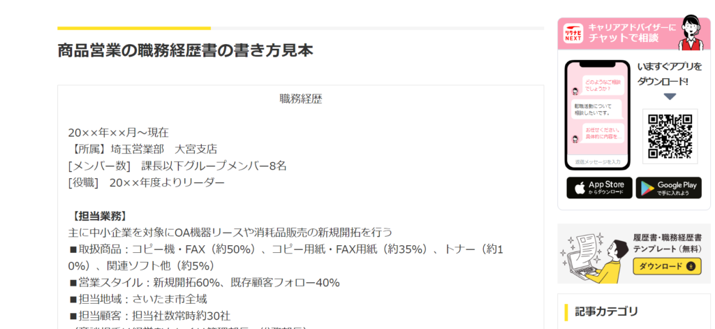 リクナビNEXTは職務経歴書テンプレートダウンロードだけでなく、