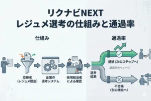 なお、どちらの経路から応募するかで迷った場合は、リクルートエージェント経由がおすすめです。キャリアアドバイザーが応募書類を添削してくれるうえ、企業に対してあなたの強みや人柄を推薦してくれることもあるため、選考通過率が高まる可能性があります。一方で、リクナビNEXTからの応募は企業にとって採用コストが低いため、コスト面で有利に働くケースもゼロではありません。総合的に見れば、サポートを受けられるエージェント経由のほうがメリットは大きいでしょう。