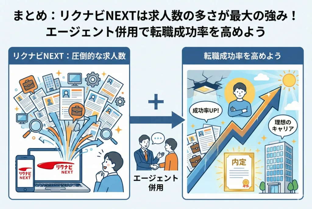 まとめ:リクナビNEXTは求人数の多さが最大の強み!エージェント併用で転職成功率を高めよう