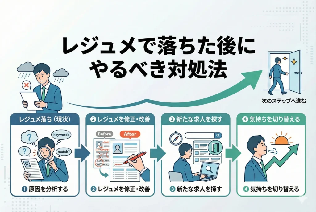 ここでは、レジュメで落ちた後に取るべき具体的な対処法を3つ解説します。落ちたことを次のチャンスにつなげるために、ぜひ参考にしてください。