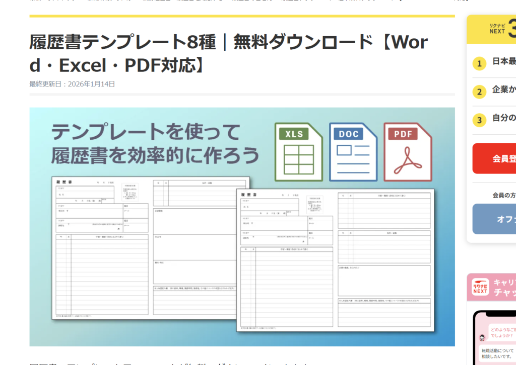 リクナビNEXTで履歴書作成する方法。テンプレ選び/ダウンロードやり方を紹介