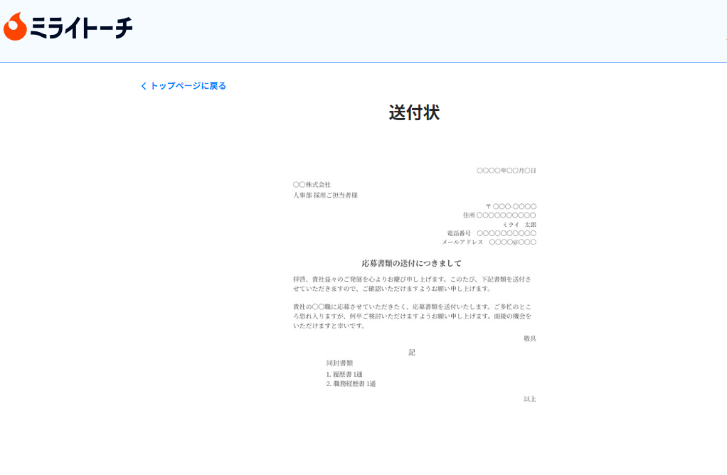 ミライトーチResume|スマホ完結・送付状まで一括作成