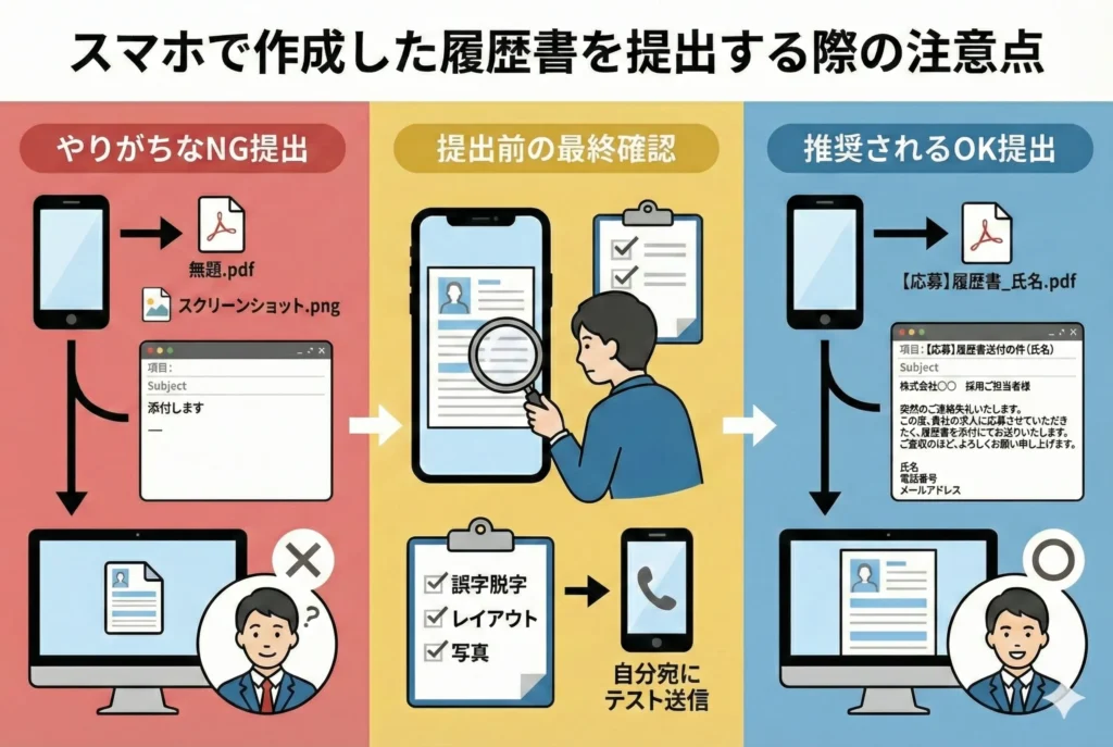 ここでは、スマホで作成した履歴書を提出する際に気をつけるべき5つの注意点を解説します。