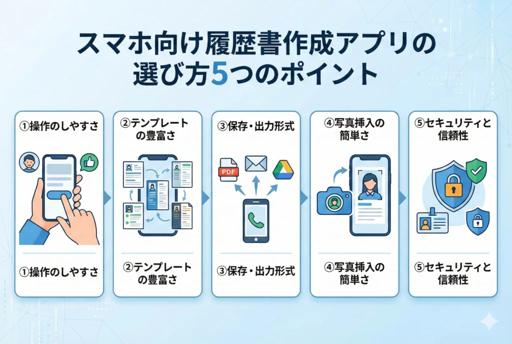 スマホ向け履歴書作成アプリの選び方5つのポイント