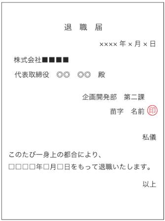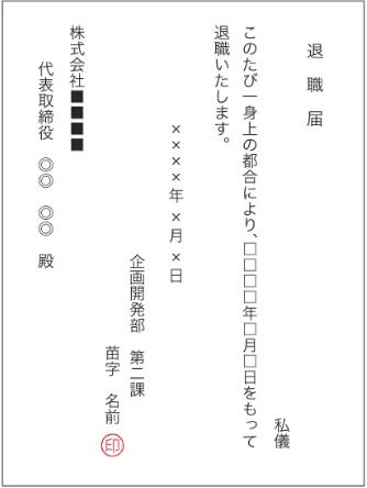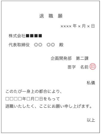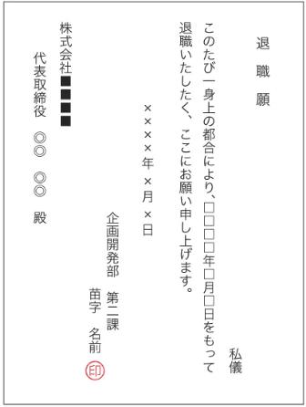 一身上の都合により、令和〇年〇月〇日をもちまして退職いたしたく……