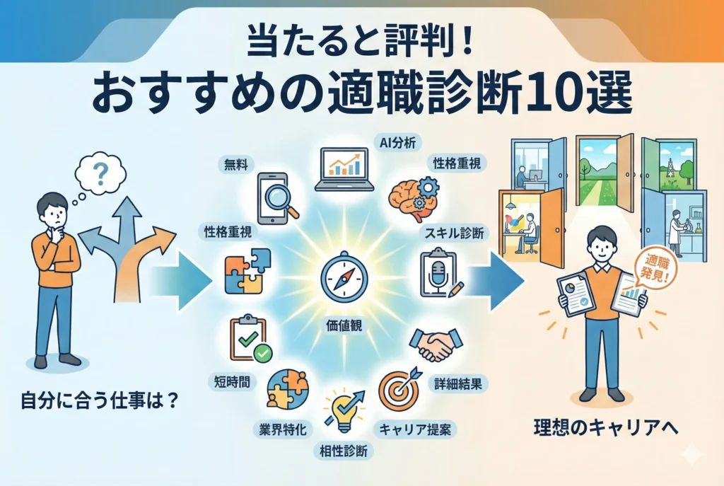 本記事では、当たると評判のおすすめ適職診断10選を中心に、診断の選び方や結果の活かし方、受ける際の注意点まで幅広く解説しました。