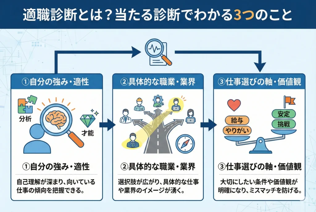 当たると評判の適職診断を受けることで、主に以下の3つのことがわかります。